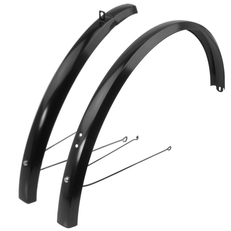 Sada černých ocelový blatníků určených pro městská a trekingová jízdní kola o velikosti 26". Na rozdíl od plastových blatníků drží svůj tvar, nepodléhají tolik vibracím a vypadají skvěle a stylově i po letech používání.
