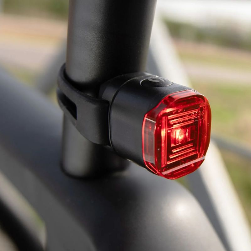 Zadní blikačka (světlo) s nápájením z lithium-polymerové baterie dobíjející se přes dodávaný USB-C kabel. Kompaktní blikačka se snadnou a rychlou montáží nejen na sedlovku nebo zadní vidlici jízdního kola.