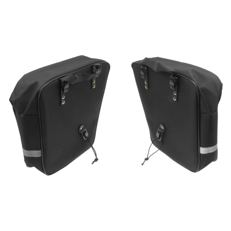Sada 2 kusů samostatných lichoběžníkovým brašen Monte Grappa Laterale černé barvy určených k zavěšení na zadní nosič jízdního kola. Tím, že nejsou brašny spojené, zůstane Váš nosič volný i pro další využití.