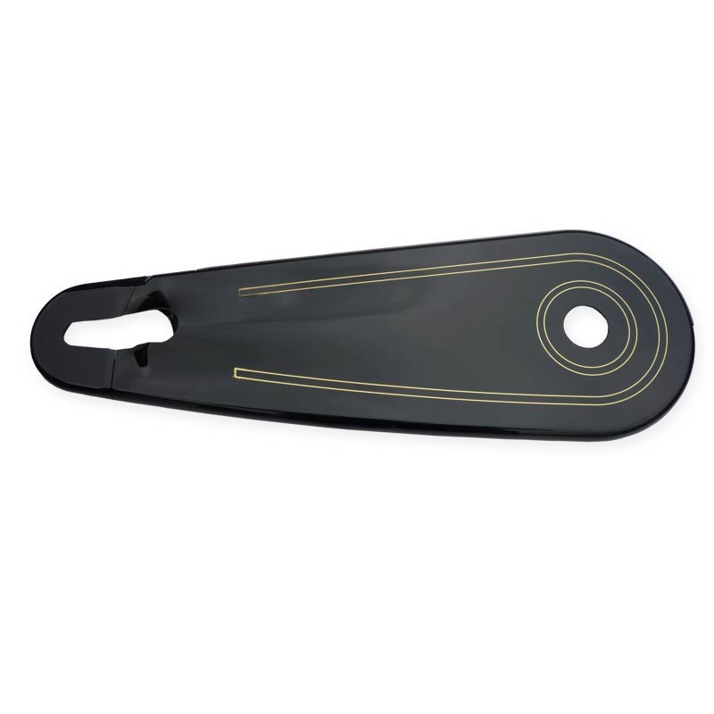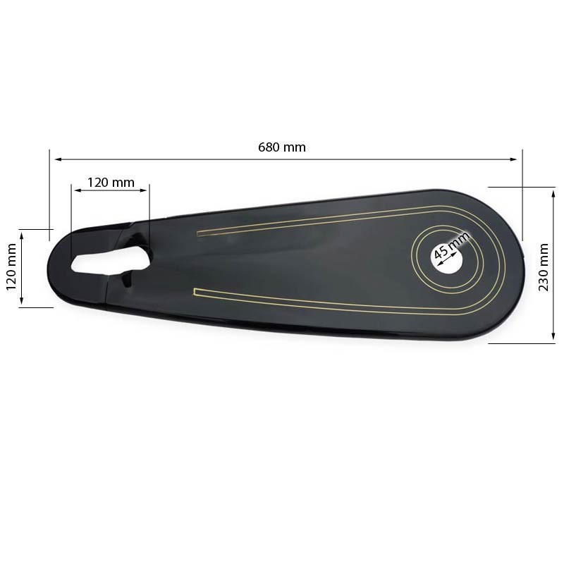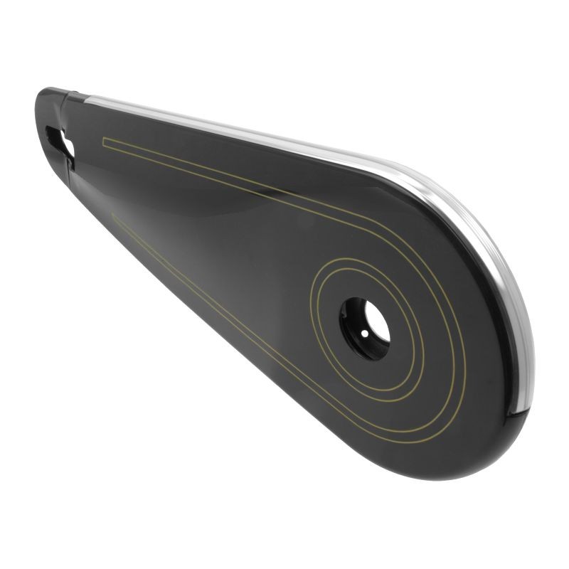 Univerzální celouzavřený kryt řetězu Hesling určený pro 28" městská jízdní kola. Elegantní černý kryt se zlatými linkami chrání před kontaktem se špinavým řetězem a ostrými zuby převodníku, a prodlužuje životnost celého řetězového soukolí. Univerzální montáž na většinu klasických městských jízdních kol.