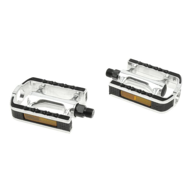 Hliníkové pedály stříbrné barvy jsou určené zejména pro městská, cestovní a trekingová jízdní kola.