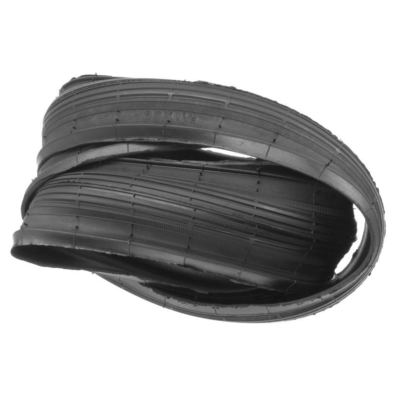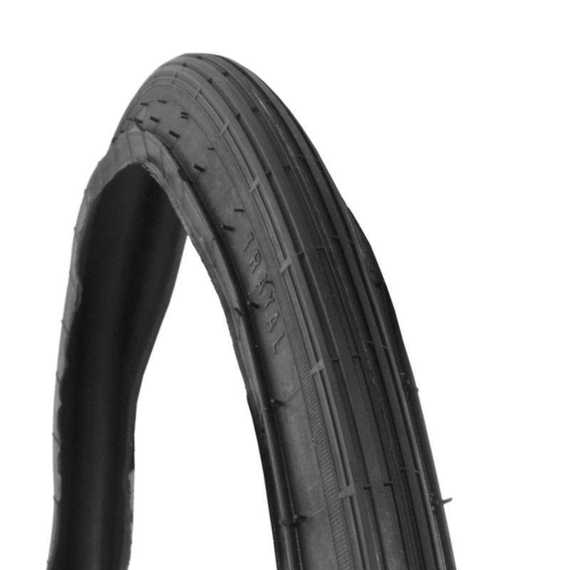 Falcový plášť Trayal D-36 černé barvy s jednoduchým drážkovým dezénem. Falcové pláště bez pevné drátové kostry vyžadují speciální ráfky, používané na starých a historických jízdních kolech.