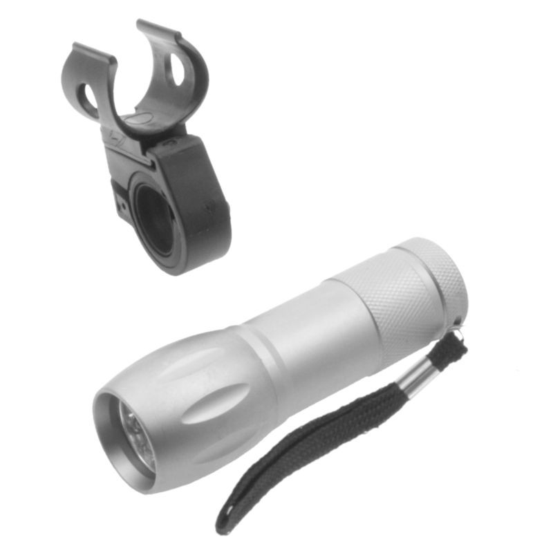 Univerzální světlo s držákem - objímkou na zacvaknutí. Světlo snadno uchytíte do plastové objímky, popř. díky poutku využijete i při chůzi. Odolné provedení světla díky hliníkovému provedení.