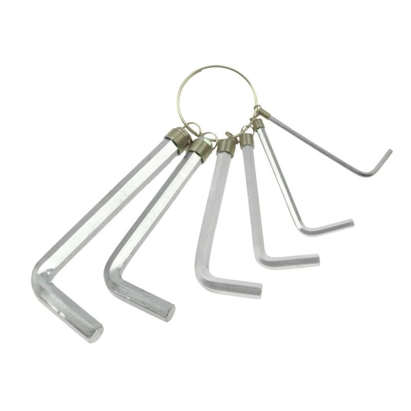 Univerzální sada 6 ks imbusových klíčů. Klíče na pružinové objímce jsou navlečeny na ocelovém kroužku.